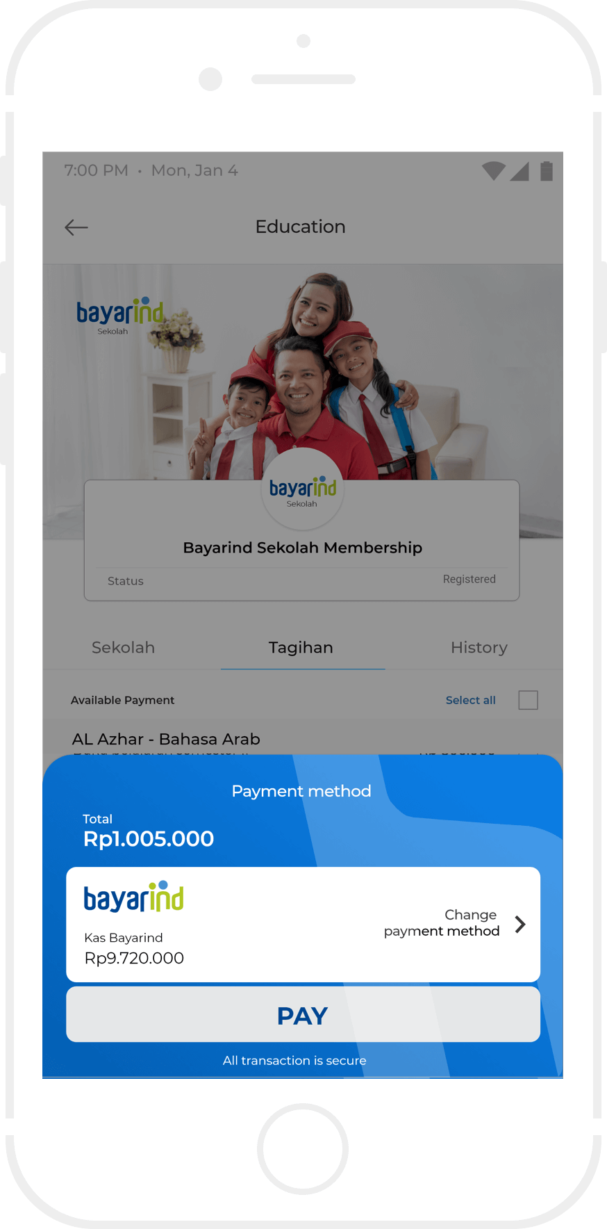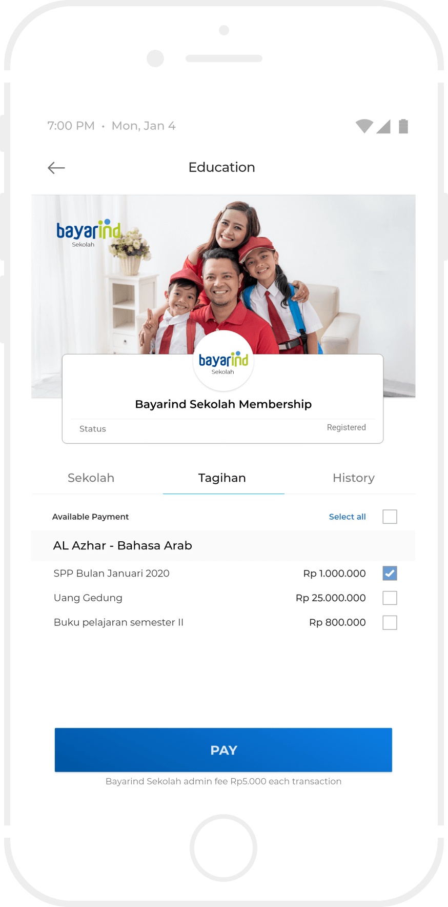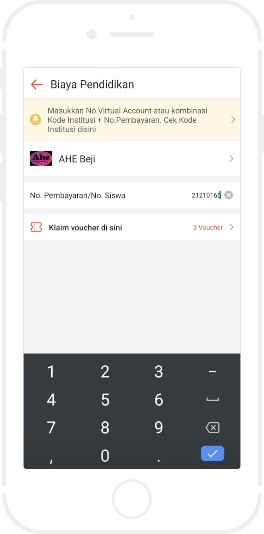 Bayar sejumlah nominal dengan menggunakan tunai atau non tunai.