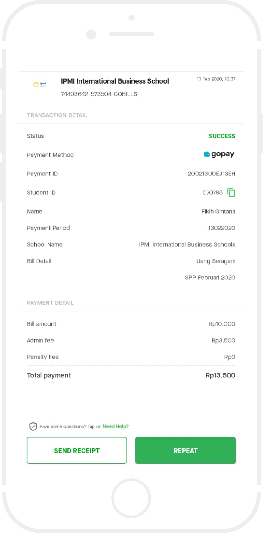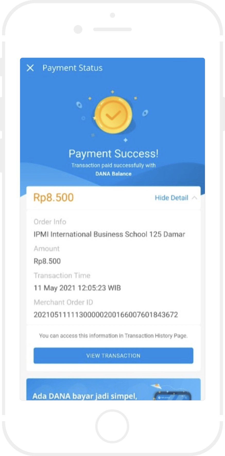 Anda akan menerima struk pembayaran sebagai bukti transaksi berhasil.