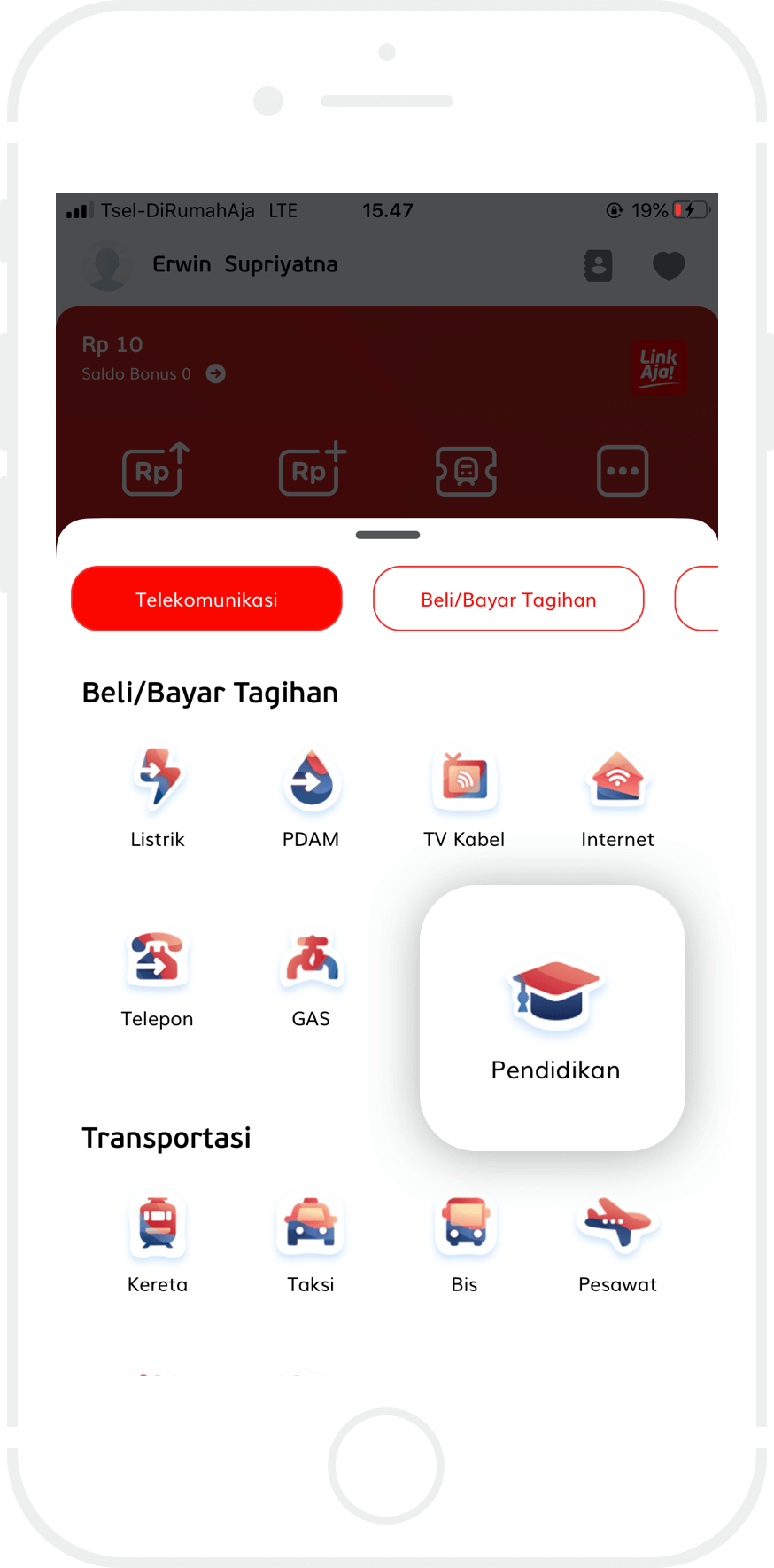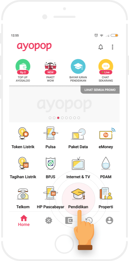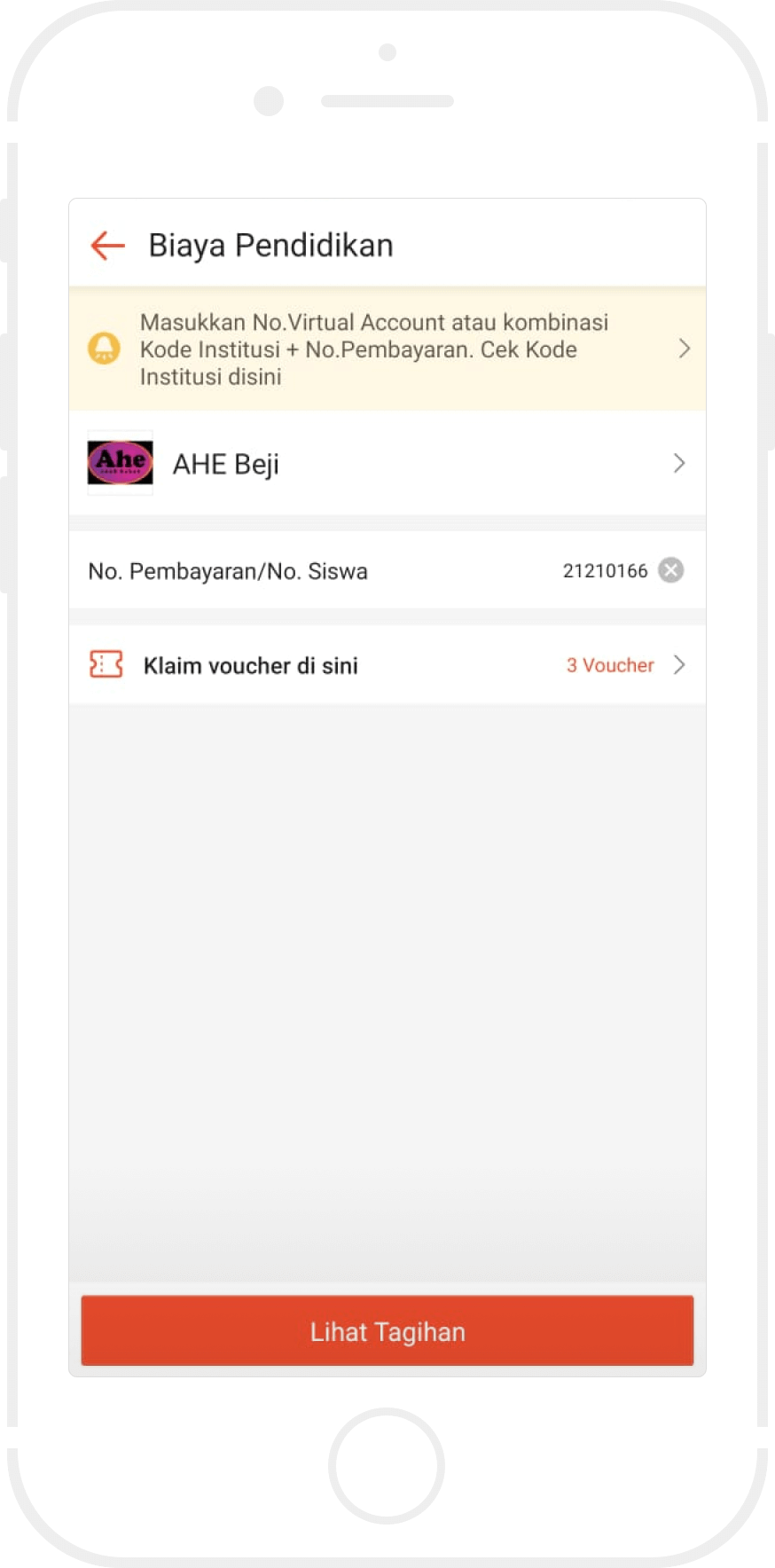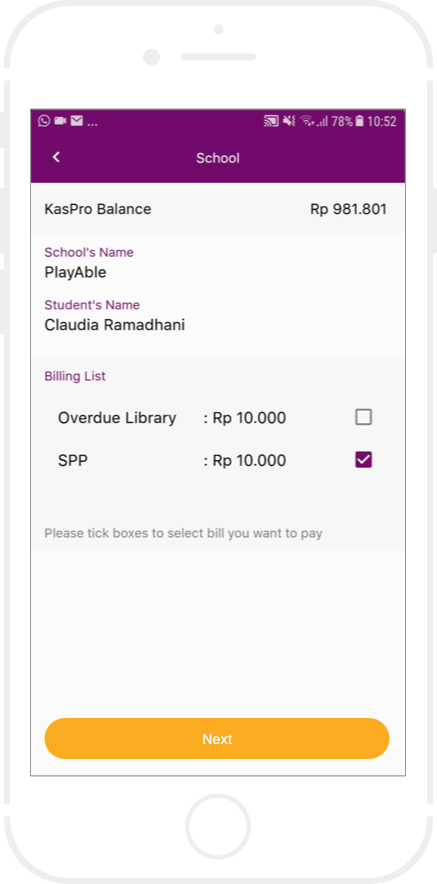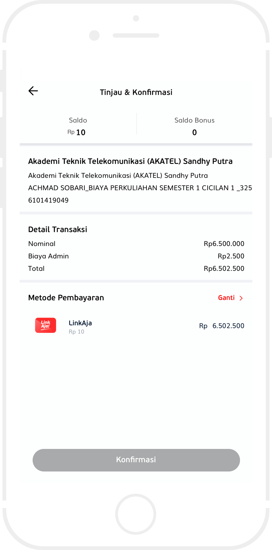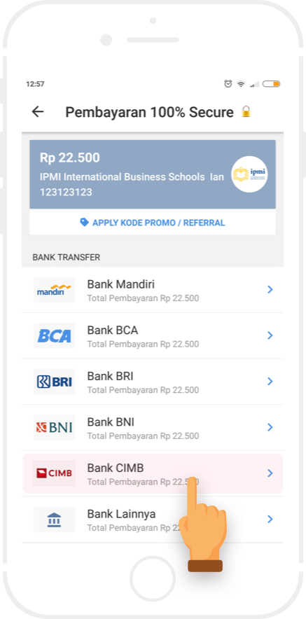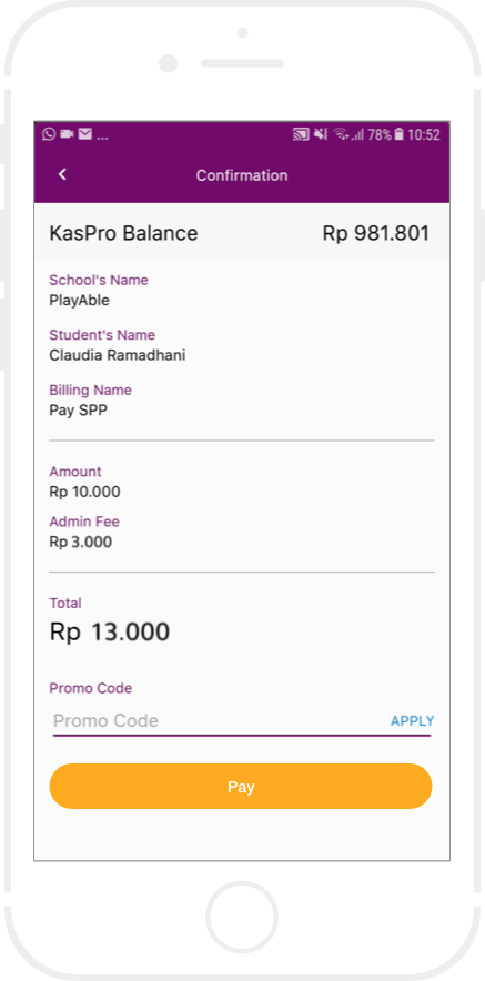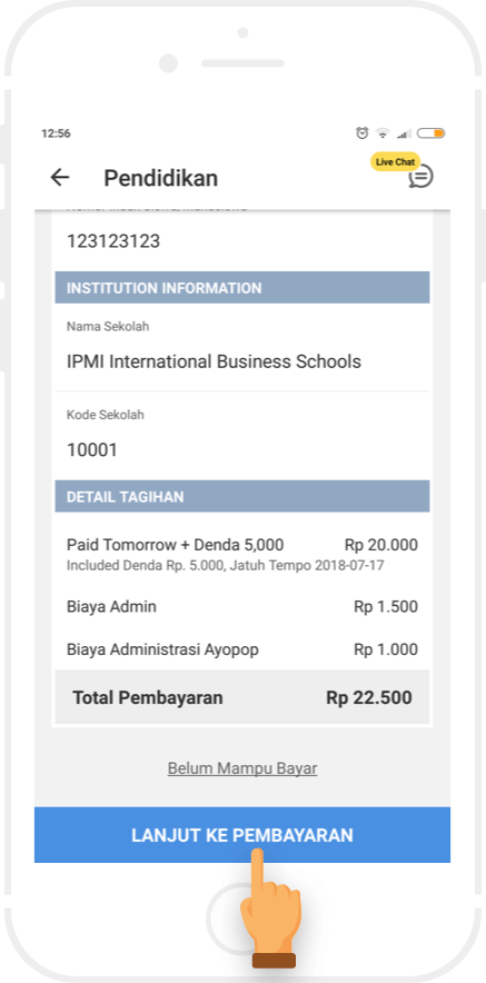 Bayar sejumlah nominal dengan menggunakan tunai atau non tunai.