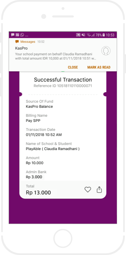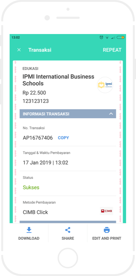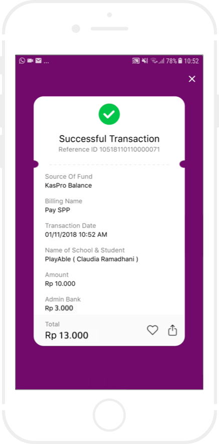 Anda akan menerima struk pembayaran sebagai bukti transaksi berhasil.