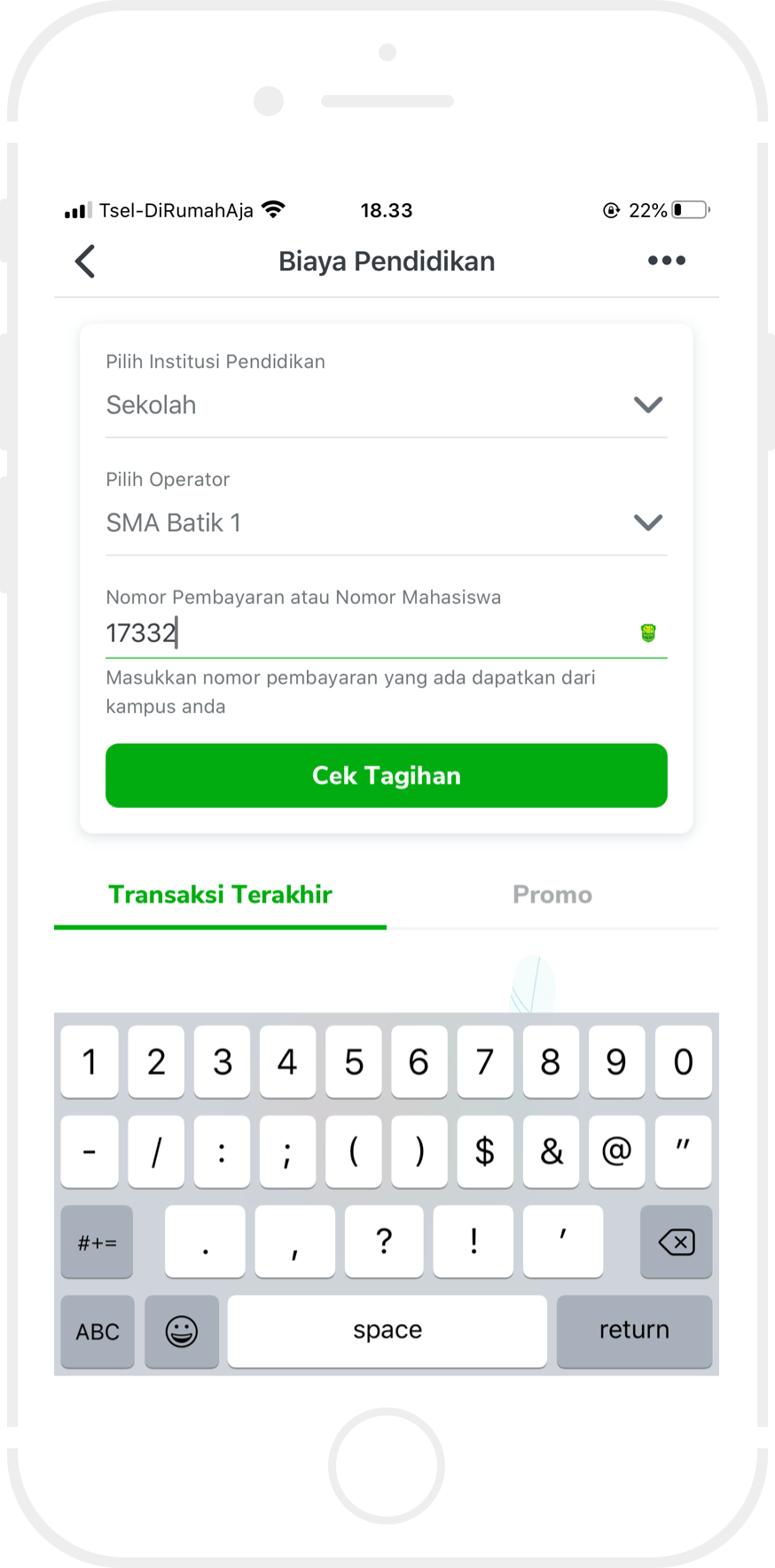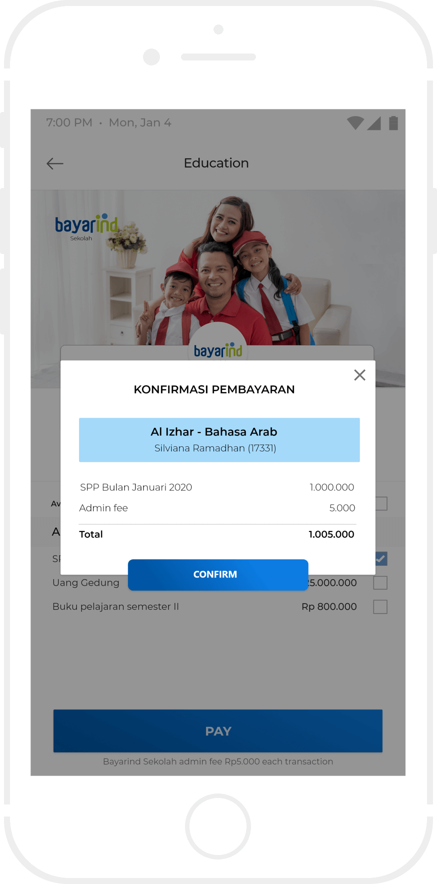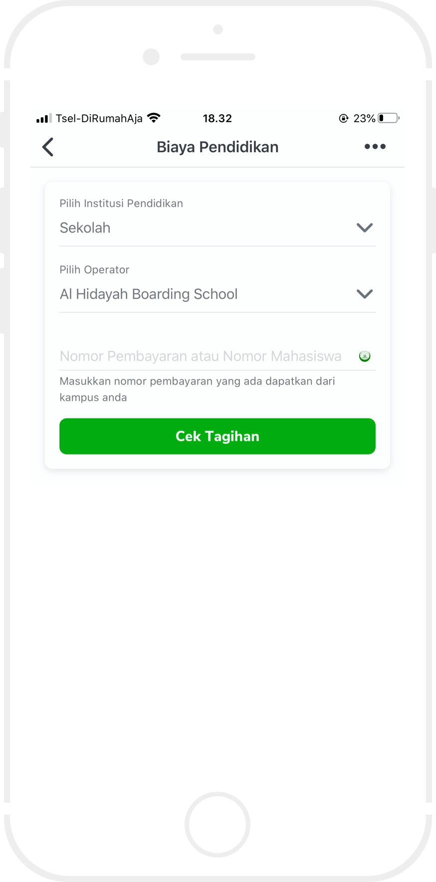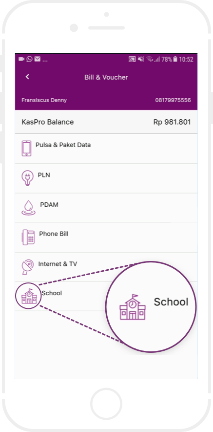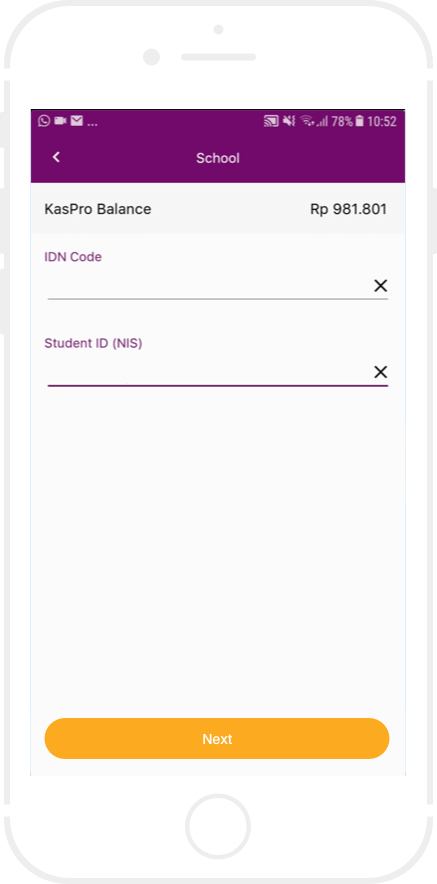 Informasikan kepada agen MKM akan melakukan pembayaran Iuran Pendidikan, kemudian sebutkan Kode IDN (Nama Sekolah/Instansi) dan NIS (Nomor Induk Siswa / Mahasiswa).